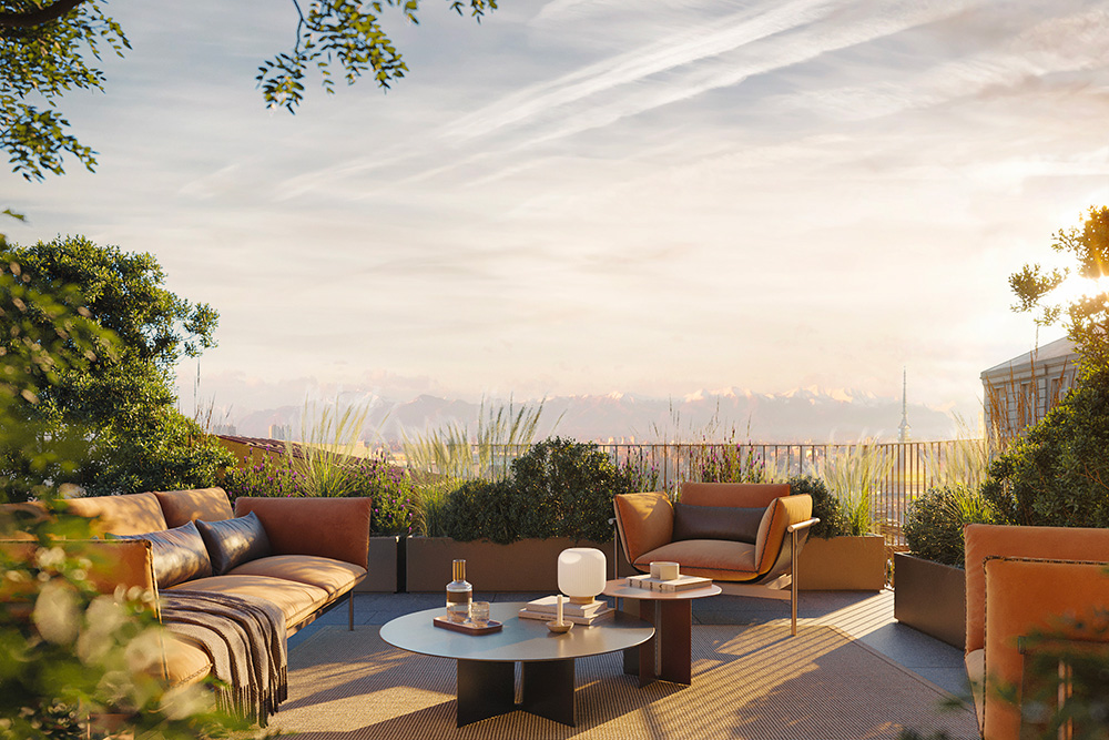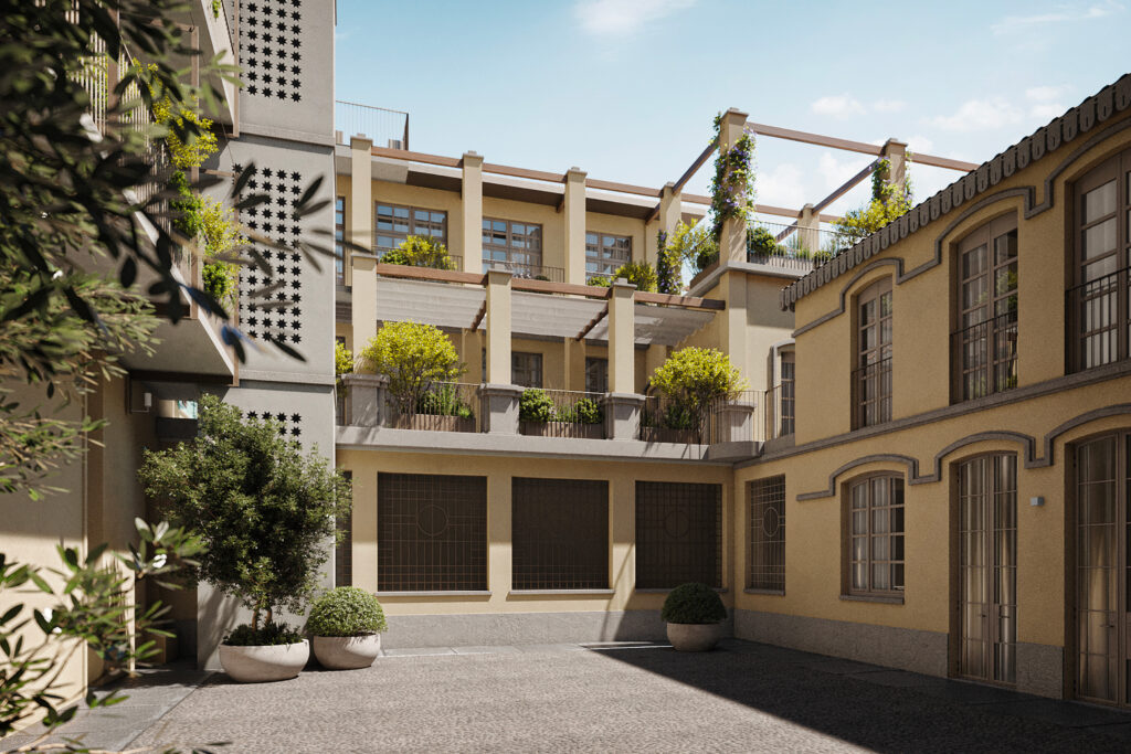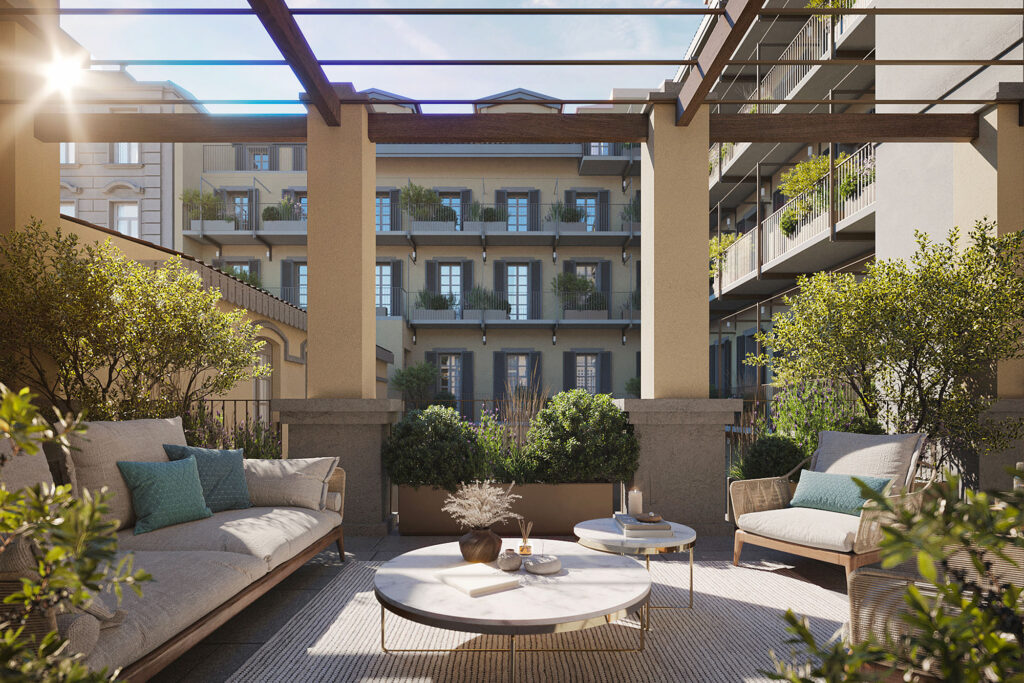 Balconi e terrazzi realizzati ex novo sul lato cortile dell’edificio, che creano spazi all’aperto su corte privata, garantendo totale privacy e riservatezza.